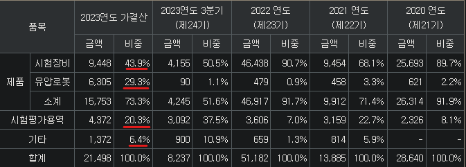 동사는 사업 초창기에는 시험장비, 용역파견 등으로 시작을 했어요. 이제는 캐시카우(Cash Cow) 역할을 하고 있죠. 동사의 앞으로의 경쟁력은 바로 '유압로봇시스템'입니다. 매출액 비중도 점차 올라오고 있고, 사용처(원자력발전소, 풍력발전기 등 극한환경) 등에는 필수적으로 쓰이기 때문에 지켜보면 좋을 것 같습니다.