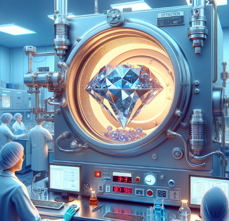 - 생산원리 : 고압고온(HPHT, than 1500'C+500kPa) or 화학적기상증착(CVD)