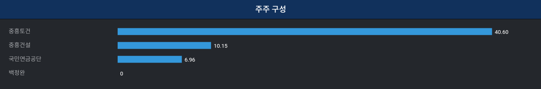 주주구성(22년말 기준) : 중흥그룹에게 인수되었고, 가장 지분이 높은건 현재 중흥그룹을 사실상 경영하고있는 정원주 부회장이 지분율 100%가지고있는 중흥 토건.