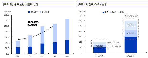 - 기회 : 1인당 과자소비량성장(현 3.8kg/1인 vs. 중국 7.8kg/1인), 인도건과&빙과 Capa증설,