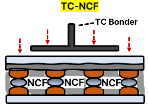 TC-NCF는 Thermal Compression - Non-Conductive Film의 약자인데요. 이름 그대로, 열압착(TC) 비전도성필름(NCF)이라는 뜻이에요.