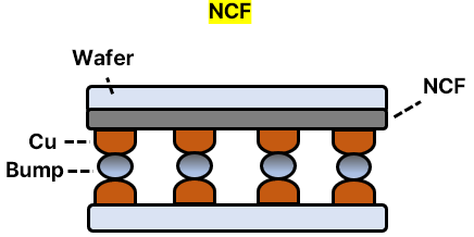 * 원리 : NCF 부착 on 웨이퍼 > TC Bonder 열압착 on 웨이퍼 > NCF 녹음 Between 웨이퍼s for 결합
