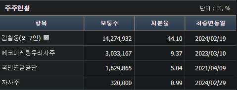 주주구성(24.3월 기준) :