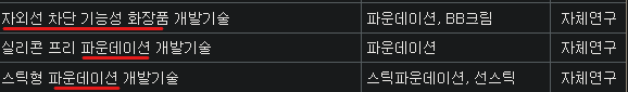 씨앤씨언터내셔널은 색조화장을 넘어 포트폴리오를 다각화 하고 있어요. 특히, '자외선 차단제' 생산도 하려고 연구개발 하고 있습니다. 사람들의 자외선의 유해성에 대한 인식이 커지면서 썬크림 같은 제품들이 필수적인 아이템이 되어가고 있는데요. 이렇게 성장하는 수요를 동사는 놓치지 않으려고 썬케어 제품에 R&D 투자하고 있습니다.