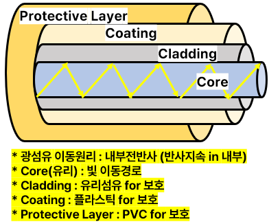 * 구성 : Core(유리)-Cladding(유리섬유)-Coating(플라스틱)-Protective Layer(PVC)