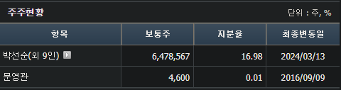 주주구성(24.3월 기준) :
