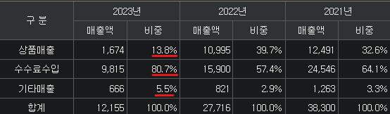 미술품수수료(81%, 낙찰수수료from구매자, 위탁수수료from판매자 in 경매, 중개), 직매입판매(14%), 기타(5%) / 경쟁력 : 과점화(with서울옥션)