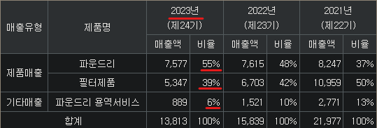 RF필터 파운드리(55%, 제작 for SAW Filter on 스마트폰), 자체상품(39%, SAW Filter=IoT, 차량용RF, 방산용RF, 중계기 등), 기타(6%, 용역) / 경쟁력 : 유일 RF필터 파운드리(4,6인치 가능)