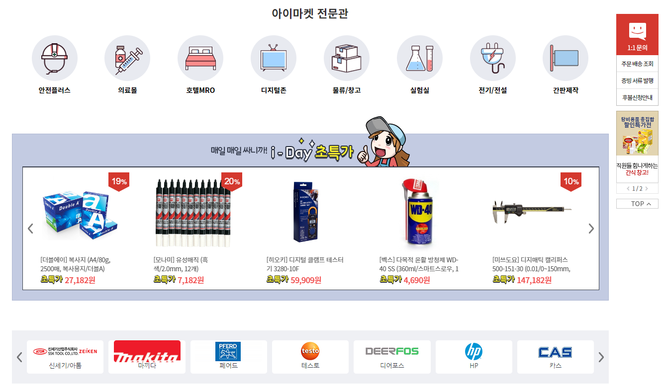 B2B 전자상거래 : 유통 Between 판매자 & 구매자 > 품목 : 자동화설비, 기계부품, 철근, 사무용품, 서버, 네트워크 장비 등 외 산업재(소모품자재, 건자재, 원자재, IT기기 etc.)