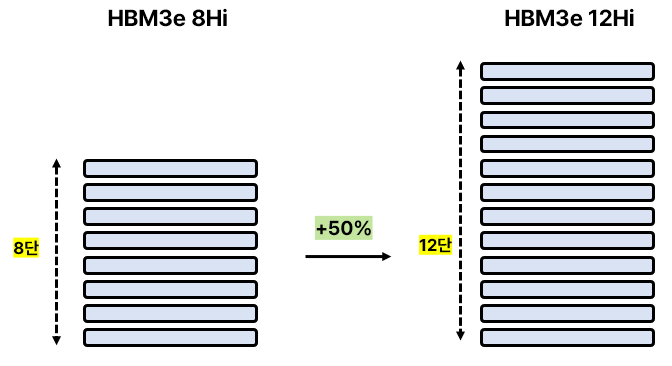 - 기술변화 : HBM3e 8Hi to 12Hi for AI 가속기(ex - 블랙웰)