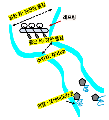 - 질문 : 강물을 타고 래프팅을 할 때, 특정 구간마다 물길의 세기가 다름. 왜 그럴까?