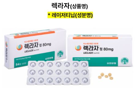 - 렉라자(Leclaza): 레이저티닙의 상품명으로, EGFR T790M 변이 양성 비소세포폐암 환자를 대상으로 해요.