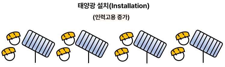 - Installation: 태양광 패널 설치와 같은 Downstream 작업으로 고용 창출의 중요한 부분을 차지함.