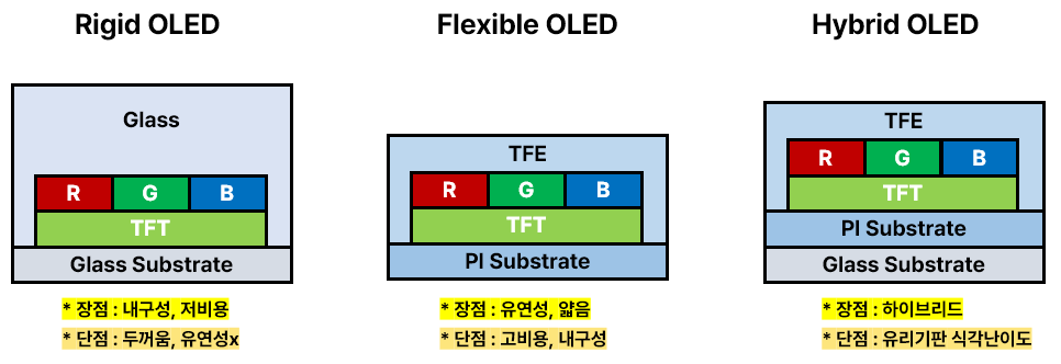 - P OLED: Plastic OLED, 유연한 디스플레이 기술로 주로 모바일 기기나 웨어러블 기기에 사용돼요.