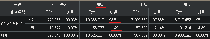 첨단바이오의약품 CDMO(100%, 세포치료제, 유전자치료제 for 희귀질환=근감소증 등) / 생산지역 : 국내(삼성병원, 하남)