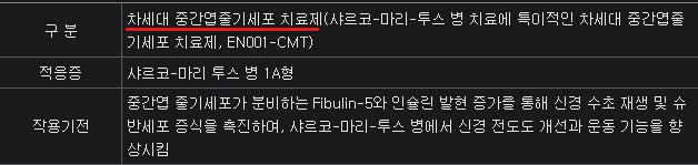 동사는 첨단바이오의약품인 세포치료제, 유전자치료제 CDMO 사업을 하고 있다고 했죠. 특히, 근감소증과 관련한 희귀질환을 주로 타겟으로 하고 있는데요. 대표적으로 샤르코-마리-투스병이 있어요. 유전성 말초신경병증라고도 부르죠. 즉, 말초신경은 감각기능, 운동기능을 담당하는 아주 중요한 신경인데요. 특히, 뇌와 근육 사이에서 신호를 전달하는 우체국 역할을 해요. 이러한 말초신경에 문제가 생기면 뇌가 근육에 신호를 보내지 못하겠죠. 그래서, 세포치료제 중 하나인 '중간엽 줄기세포치료제'로 이러한 희귀질환을 치료하기 위한 임상시험을 하고 있어요. 중간엽 줄기세포는 신경을 재생하는데 도움을 주는 성장인자를 분비해요. 임상결과는 나와야알겠지만, 동사의 사업방향성을 가늠하는데 도움이 될 것이에요.