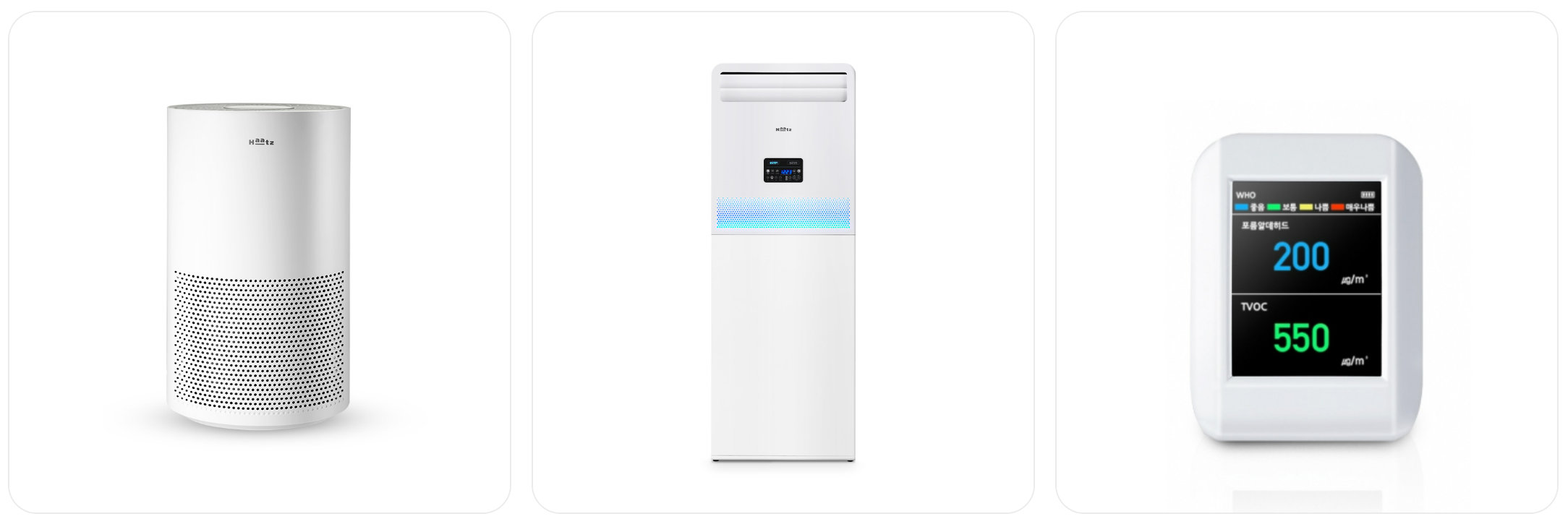 대표적으로 '공기청정기', '환기시스템(공기질 측정기, 욕실팬 등)'이 있어요.