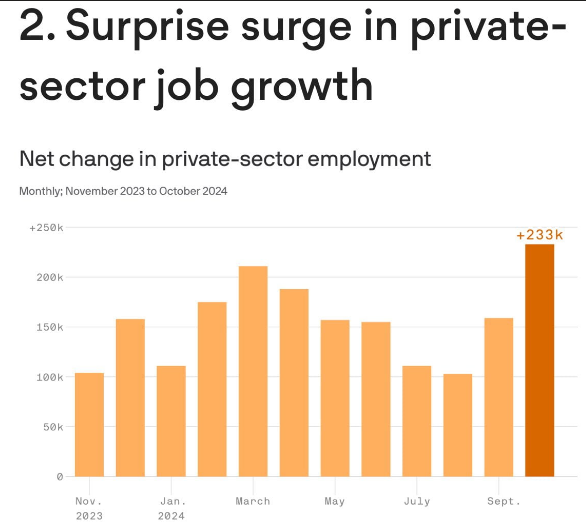 · [ADP 10월 민간고용 데이터], 일자리 매우 가파른 증가 :