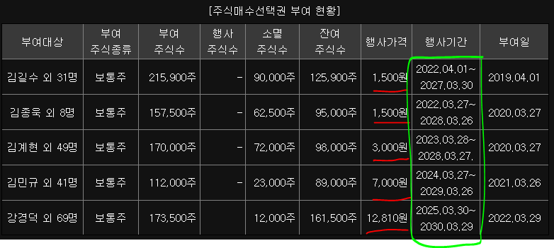 주식매수권선택권 : 저렴한 가격에 매수선택권이 있는 관계자들