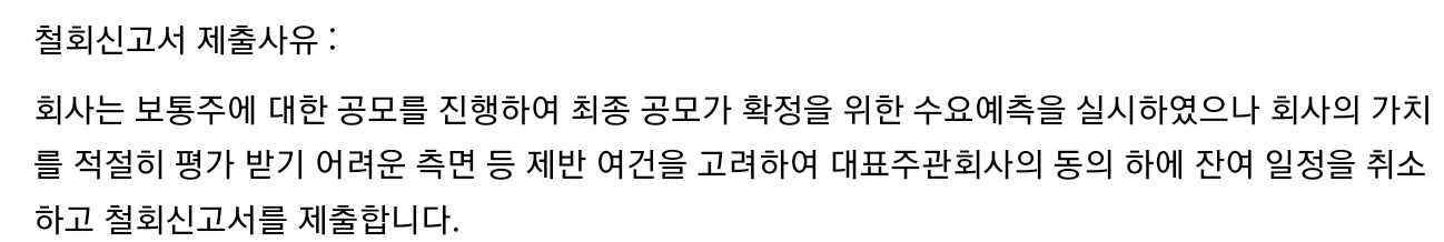 마지막으로 밀리의 서재가 공식적으로 발표한 공모철회 이유를 남깁니다.