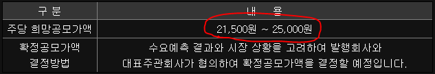 아무튼, 21,500원~25,000원을 써냈으며 수요예측을 통해서 이 경계안에서 가격이 결정될 것 같아요. 수요예측일은 아래와 같습니다.