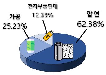 · (핵심사업!!)2차전지 알루미늄박(압연): 압연방식으로 양극판(집전체) + LIB 외장재 + LIB 탭 -> 삼성SDI, LG에너지솔루션, SK온 주요고객 / 수출 : 77.5%, 내수 : 22.5%