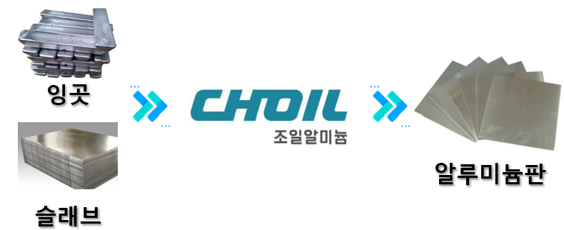 알루미늄 잉곳 원재료를 수입해오고 알루미늄판으로 판매한는 것을 볼 수 있어요.