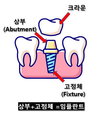 1. 임플란트 : 고정체(Fixture) + 상부체(Abutment) > 종류 : Titanium, Gold, STS