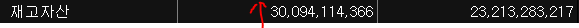 여기서 꼭 집고 넘어가야하는 부분이 있다. 가동률만 높아서는 안된다. 사실, 가동률 100%도 충분히 돌릴 수 있다. 핵심은 이렇게 공장 열심히 돌려서 찍어낸 의자가 팔렸냐이다. 팔리지 않았다면, 재고자산이 늘어났을 것이다. 그래서 시디즈의 재고자산을 가져와봤다.