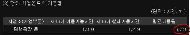 만일, 내가 큰 주방을 갖고 있는데, 전혀 요리를 하지 않는다면 주방의 가동률은 0%이다. 주방을 만드는데 들어간 인덕션, 싱크대, 받침대, 수납장, 접시 등에 투자했음에도 가동률이 0%이면 전혀 가치를 못뽑아내고 있다는 뜻이된다. 이러한 의미를 토대로 시디즈 공장의 가동률을 가져와봤다. 평균 가동률 67.3%로 나름 선방하고 있는 실적이다.