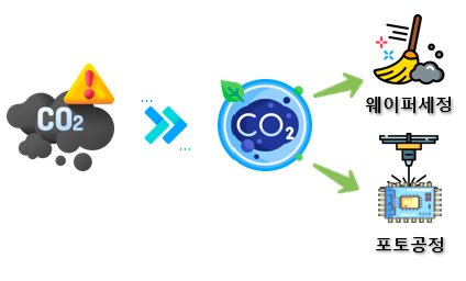 원익머트리얼즈는 반도체, 디스플레이에 들어가는 특수가스를 제조하는데요. 특수가스란 반도체, 디스플레이 제조공정에서 필요한 소재를 특수한 목적으로 만든 것을 뜻해요. 예를 들면, 이산화탄소(CO2)를 생각하면 지구를 뜨겁게 데피는 환경오염물질이라 생각을 다들 하죠. 하지만, 이를 고순도로 정제하면 웨이퍼세정 또는 포토공정에 사용되는 아주 유용한 원소로 변신하기도 한답니다.