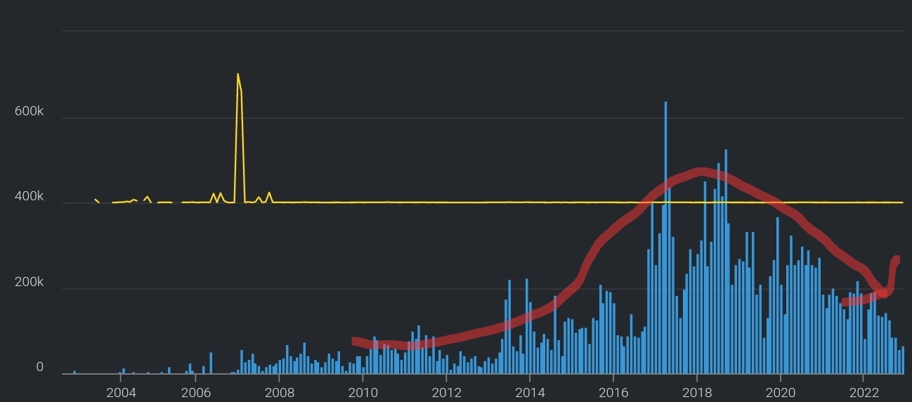 한국 디스플레이제조장비 수출액 추이 : 2016년부터 한참 상승하다가 중국의 자국내 기업 육성으로 하락 중