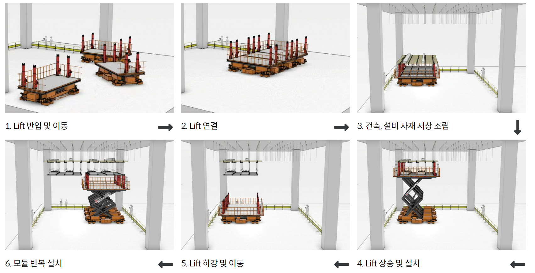 케이엔솔는 모듈화 공법으로 천장을 시공하는데요. 모듈이란 척도, 설계 등을 의미해요. 쉽게 말하면, 현장에 오기전에 미리 70%정도는 만들어서 오는 것이죠. 이는 건설업계에서도 모듈러 주택이라고 시간과 인건비를 절약할 수 있고 무엇보다 환경오염도 덜 발생시킬 수 있어 주목받고 있습니다. 동사는 미리 천장에 설치할 부품들을 미리 모듈형식으로 만들어와서 설치를 하는데요. 아래 그림을 보면, 모듈을 가져와서 천장에 올려 설치만 하는 것을 볼 수 있습니다.