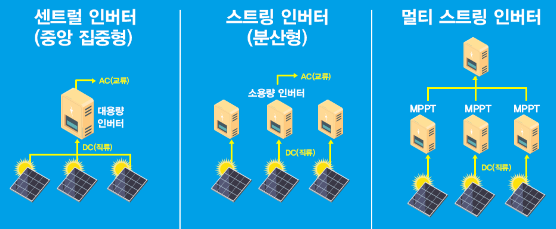 간단한 제조과정을 살펴봤는데요. 제조과정을 알게되니 신성이엔지의 기술력도 자연스레 알게됐을겁니다. 여기서, 한 가지 설명안한 것이있는데요. 바로 태양광 인버터입니다. 태양광인버터는 태양광모듈과 정비례해서 생산이됩니다. 그 이유는 인버터는 모듈에서 생산된 직류전기를 교류 전기로 변환하는 전력변환장치이기 때문이에요.