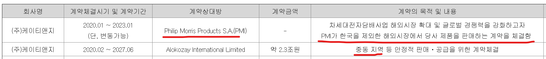 · 필립모리스에게 전자담배 납품 > 필립 모리스, 한국 제외하고 전 세계에 KT&G 전자담배 제품 판매 (15년간 파트너쉽)