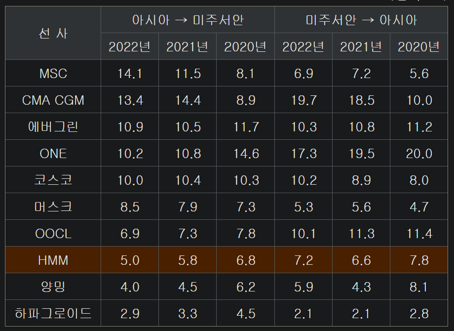 컨테이너선의 최초는 서양에서 나왔는데요. 그러다 보니, 대형 컨테이너선 해운사들이 서양에 포진해 있습니다.