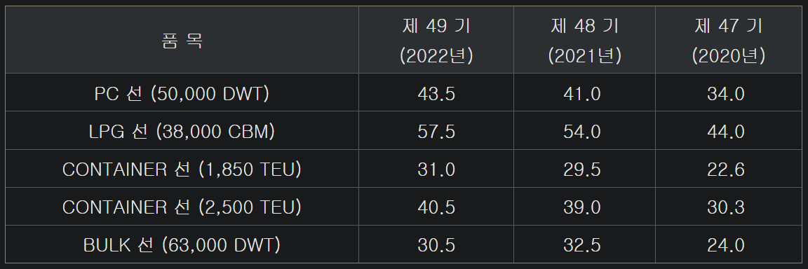 아래 표는 대우조선해양의 전자공시에서 가져온 판매단가입니다. 참고로, 그렇다고 해서 현대미포조선의 영업이익률이 10%대가 넘어가거나 그렇지는 않습니다. 조선업황이 힘들어도 적자는 모면한다는 정도만 생각하면 됩니다. 평균 OPM이 1~5% 정도 나오거든요.
