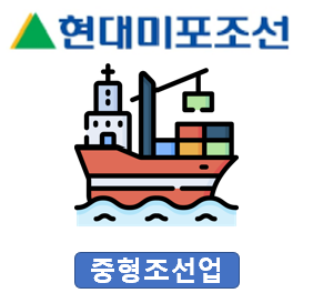 아래는 국내 조선업체들 시장점유율이에요. 현대미포조선이 현대중공업, 현대삼호중공업과 계열사라는 것을 생각하면, 조선업은 현대계열사들이 꽉 잡고 있다는 것을 알 수 있어요.