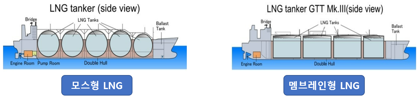 현재까지 LNG선은 모스방식 멤브레인방식, 두 가지로 나뉘어있습니다.