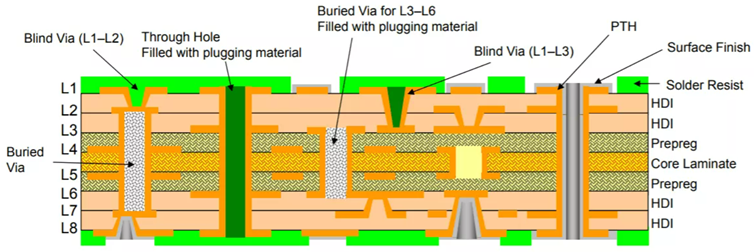 HDI는 High Density Interconnector의 약자인데요. 말 그대로 고밀도 인터커넥터란 뜻입니다. 점차 소형화 되어가는 IT기기들 추세에 맞춰서 PCB의 넓이도 줄일 필요성이 생겼는데요. 하지만, 넓이를 줄이면, 점차 고성능을 요구하는 칩과 소통하기가 무리였겠죠. 그래서, 최대한 좁은 면적에서 밀도를 높여서 PCB를 만들었는데, 이것이 HDI PCB인 것입니다. HDI PCB가 쓰이는 사용처를 보면, 스마트폰, 노트북, 디지털 카메라 등 다소 소형 IT기기에 쓰이는 것을 알 수 있죠.