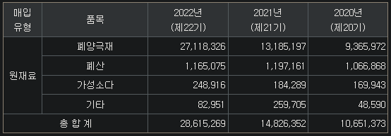 이차전지 폐배터리라고 해서 길바닥에 널려있는 것은 아닙니다. 배터리 가격이 비싸다 보니 폐배터리도 따로 판매를 하는데요. 새빗켐은 이를 재활용을 해야하기 때문에 폐배터리를 사옵니다. 즉, 원재료인 것이죠. 다만, 폐배터리를 사오고 다시 재활용하는 것이 이익이 되기 때문에 이 업을 하는 것이죠.