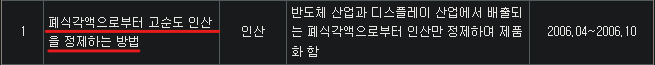새빗켐은 반도체, 디스플레이 공정에서 나온 폐수를 처리하는 일부터 했다고 했죠. 이 폐수안에는 인산염이 들어있고요. 2006년 첫 R&D 내용을 보면, 식각액에서 나온 인산을 고순도로 정제하는 연구개발을 한 흔적이 나옵니다.