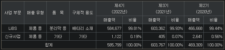 · 전고체배터리 출시가능성 > 전해액, 분리막 필요x > 동사의 분리막 매출 급감 가능성