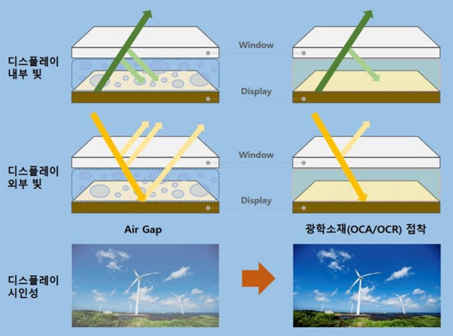 디스플레이소재 또한 빠질 수 없겠죠. 굴절율이 뛰어난 지르코니아(Zr)를 활용하여 광학필름, 고굴절렌즈에 적용판매를 하고 있고요. 반대로, 저유전, 저굴절, 단열 특성을 가진 할로실리카(Hollow Silica)를 통해 빛반사방지막에 쓰고 있습니다.