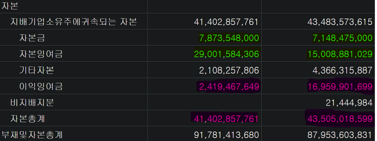 자본잉여금 : 150억 > 290억(+140억. 93%증가)