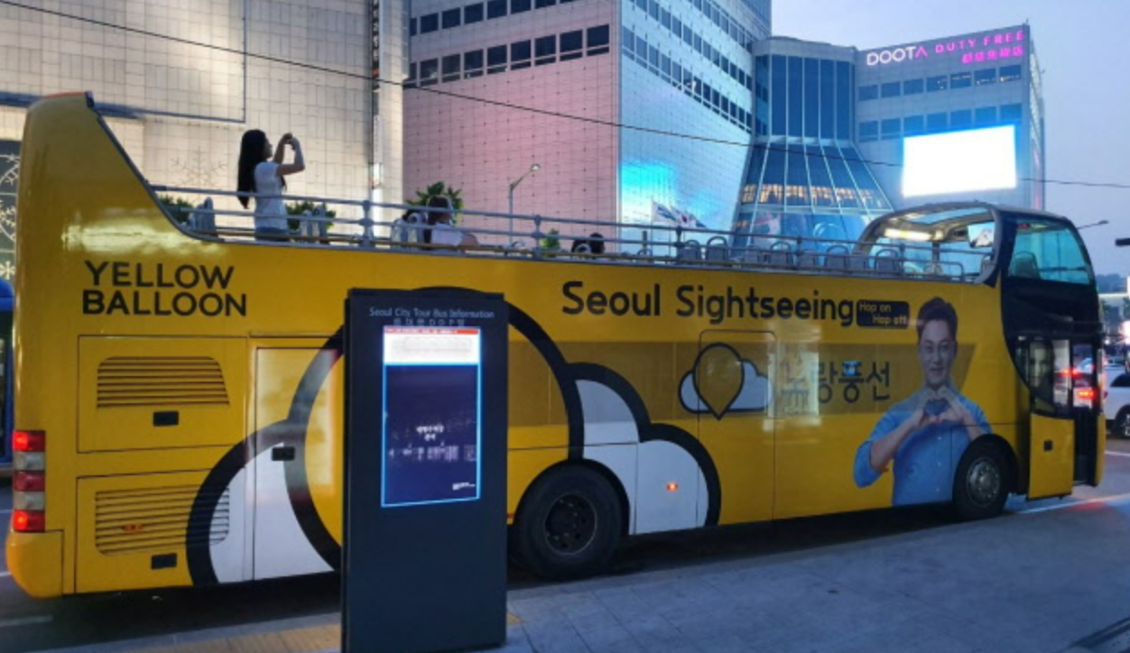 1. 노랑버스시티 : 노랑풍선시티버스(DDP 옆 정류소에서 티켓 판매, 직판+제휴). 모두 2층버스, 총 6대 버스운행. 승차권1회구입으로 모든 노선커버(동대문-청와대-남대문-인사동=전통문화코스 / 서울숲-잠실