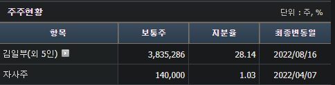 주주구성(23.9월 기준) :