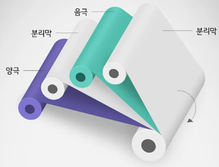 조립공정 : 양극, 음극, 분리막을 조립 > 조립방식 : 젤리롤(원통형, 각형), 스태킹(파우치, 각형)