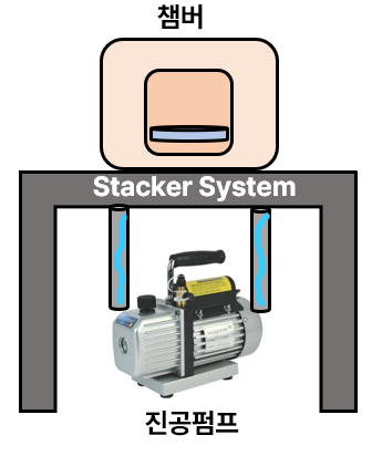 * 연결순서 : 챔버-배관(Stacker System)-펌프