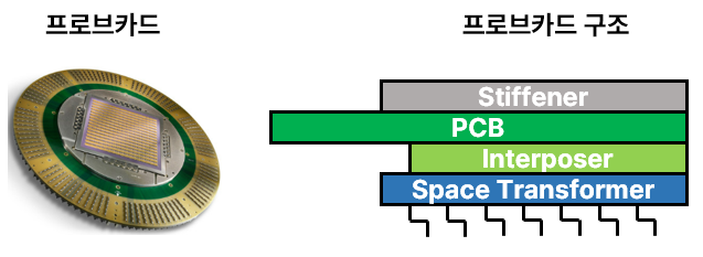 프로브카드(Probe Card)는 웨이퍼의 전기적테스트를 하기 위해 직접 접촉하는 인터페이스인데요. 전기적테스트를 하는 EDS(Electrical Die Sorting)장비에 프로브카드가 얻는 결과물을 전달해주기 위해서 PCB가 필요한데요. 타이거일렉이 이 PCB를 만들어요.